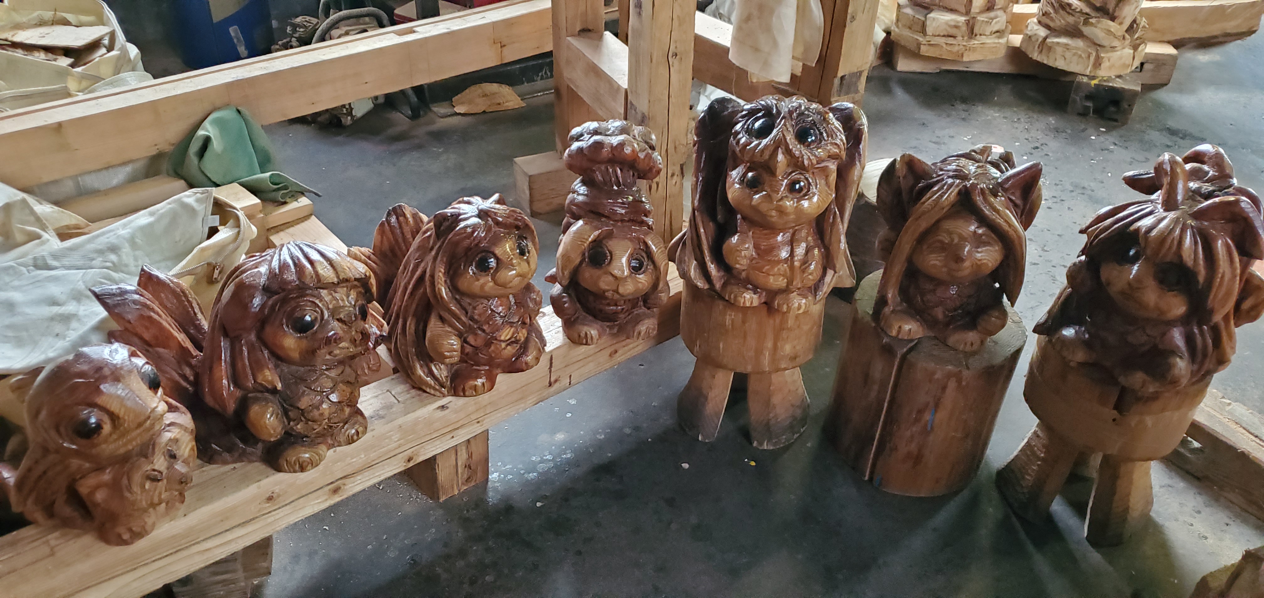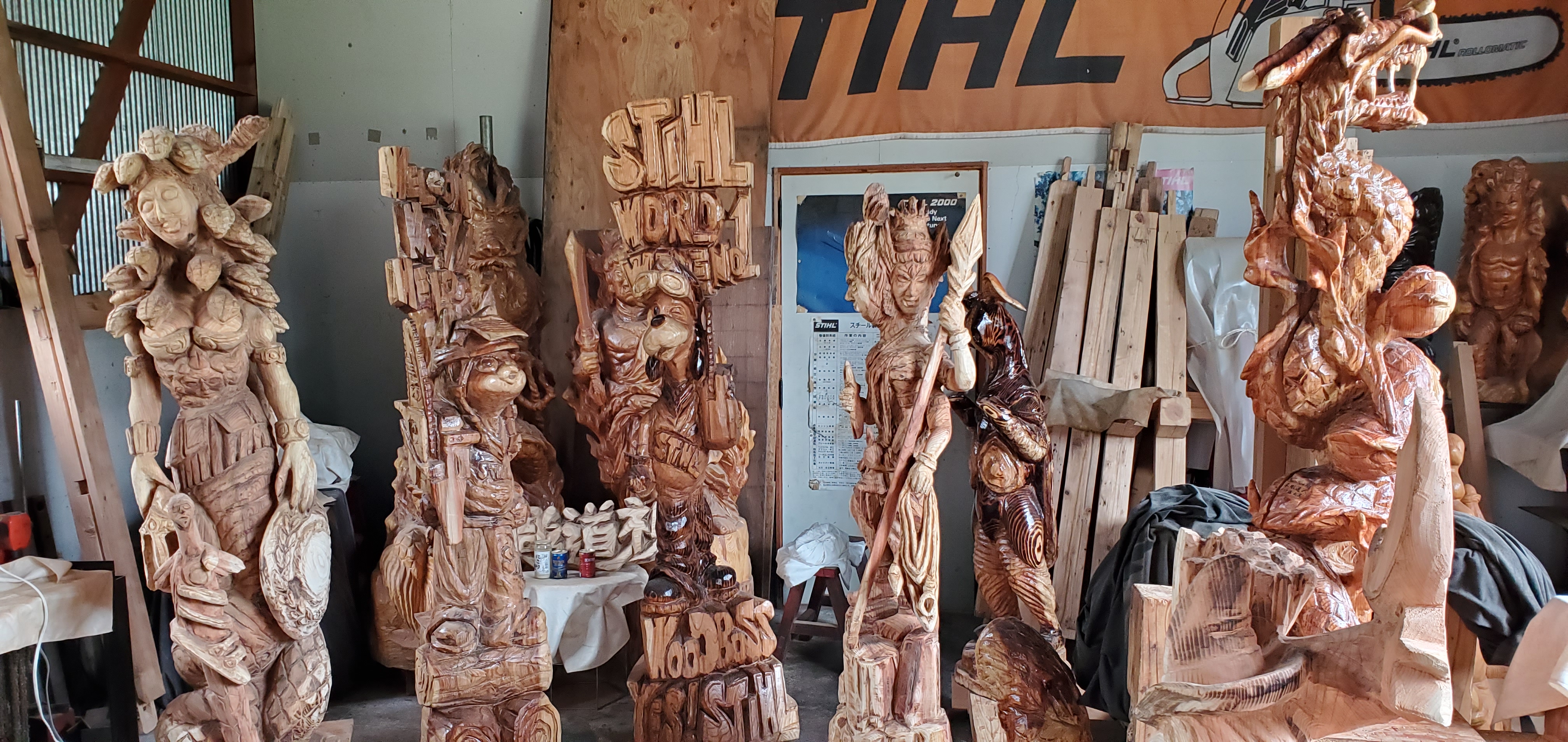 チェーンソーというと農作業の主に森林の伐採というイメージがありますが、それだけはありません。 最近は芸術にもこのチェーンソーが使われています。こちらでは、秋田県由利本荘市にある、木彫道人 伊藤正美氏によるチェーンソー木彫刻の制作をご紹介いたします。会社での作品の展示もしておりますので、お気軽にお立ちよりください。